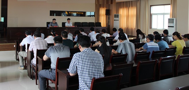 2014年7月26日下午,江苏康生集团公司召开了“学习培训工作专题会议”。康生药业中层以上干部、集团其他公司部分领导参加了会议。王笃豪、林春东、辛从源、单学静、陈晓雷、聂磊、王连良等七位外出培训的干部在前排就坐。会议由总顾问、监事长沈康生主持,董事长林向东作了专题发言。